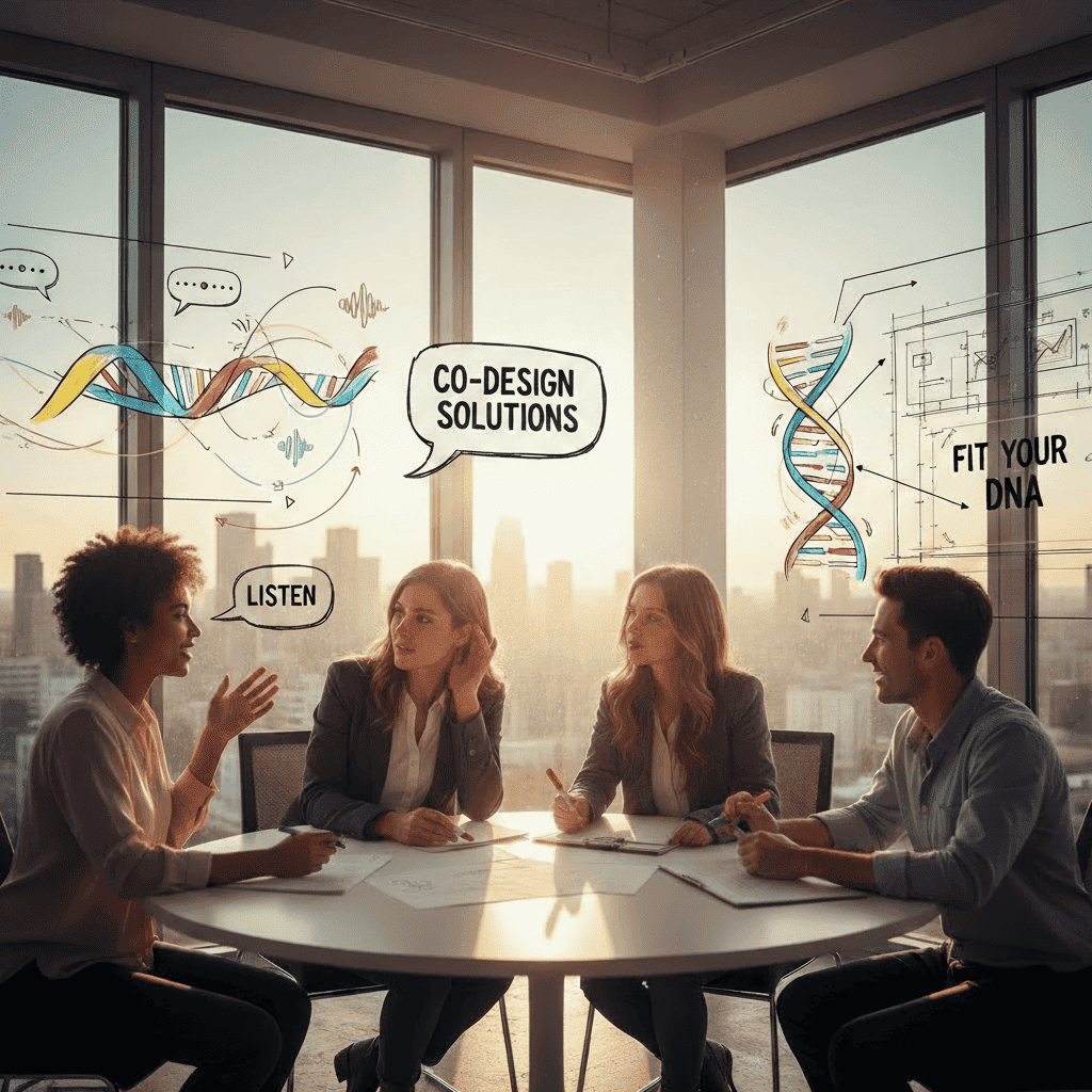 We start by listening. We co-design solutions that fit your DNA