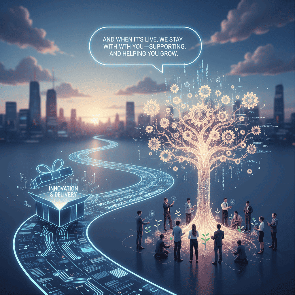 We deliver with care, making change seamless. And when it’s live, we stay with you—supporting, refining, and helping you grow.